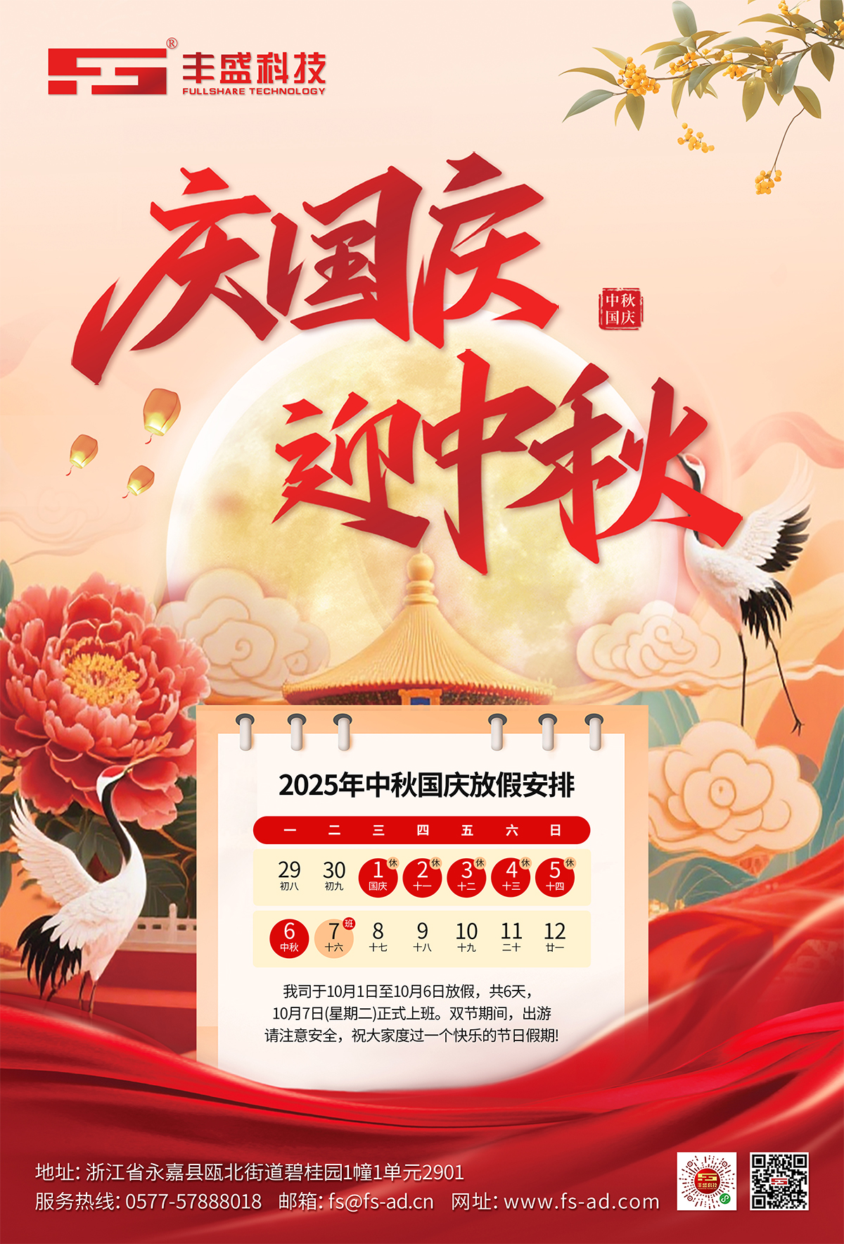 發(fā)布日期:2025-09-30 14:34:46錦繡中華,喜迎華誕;皓月當(dāng)空,情滿中秋。值此國(guó)慶中秋雙節(jié)之際,